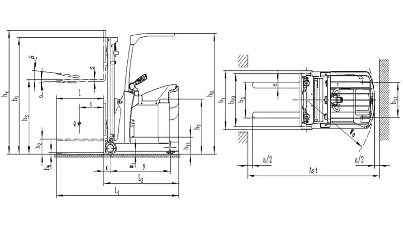 | الحد الأدنى لعرض ممر التكديس بزاوية قائمة (mm) | 2223+200 | 2514+200 | |